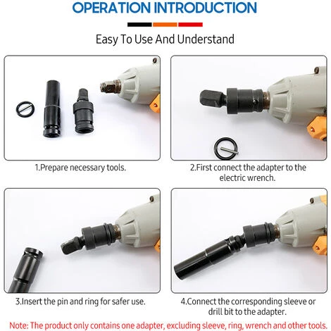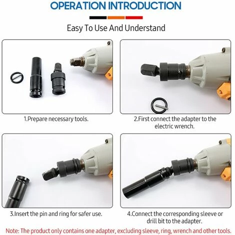5. Breites Anwendungsspektrum: Dieses Produkt ist mit Ratschenschlüsseln und elektrischen Schraubenschlüsseln kompatibel und eignet sich für elektrische Schraubenschlüsselarbeiten in verschiedenen unkonventionellen Umgebungen wie Haushalten, Lagern, Garagen, Reparaturwerkstätten, täglicher Wartung usw.