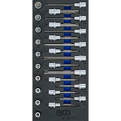 - 10 Bit-Einsätze, Antrieb Innenvierkant 12,5 mm (1/2″), T-Profil (für Torx) T20 – T25 – T27 – T30 – T40 – T45 – T50 – T55 – T60 – T70, Länge: 100 mm