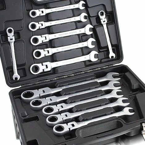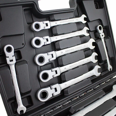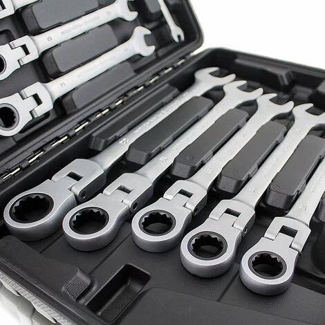 – je 1x Gelenk Ratschenschlüsssel: 8mm, 9mm, 10mm, 11mm, 12mm, 13mm, 14mm, 15mm, 16mm, 17mm, 19mm, 22mm