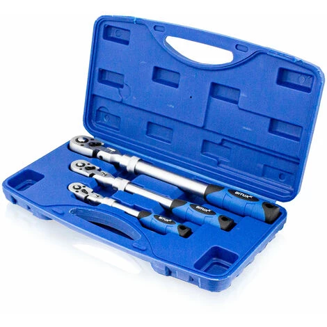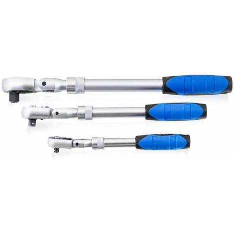 Dieses Set besteht aus 3 ausziehbaren Gelenk Umschaltknarren im praktischen Plastikkoffer.