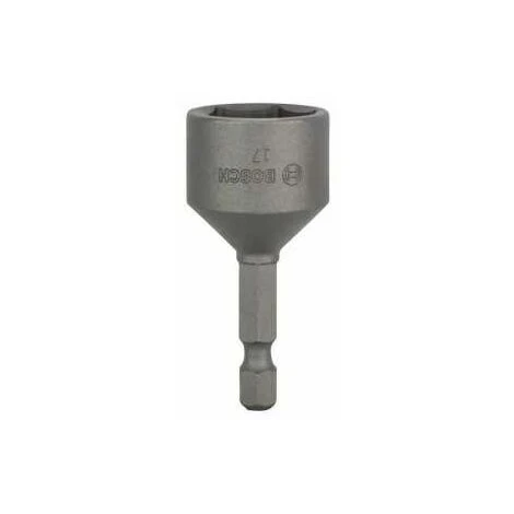 Bosch Steckschlüssel, 50 x 17 mm, M 10, mit Magnet | Eigenschaften: Für Gewinde: M 10, Länge mm: 50, Schlüsselweite mm: 17, Spezifikation: 50 x 17 mm, M 10, Für Außen-Torx-Schrauben: nein, Für Bohrschrauber und Schrauber: nein, Für Schlagschrauber: nein, Für Sechskantschrauben: nein, VDE-geprüft: Ja, Klingenlänge: 50 mm, Abtriebsform: Außensechskant, Abtriebsgröße: 17, Antriebsform: Sechskant , Antriebsgröße (in Zoll): sonstige, Norm: 0, Vergütung Klingenmaterial: -, Ausführung: Bit, Klingenbreite (in Zoll): 63