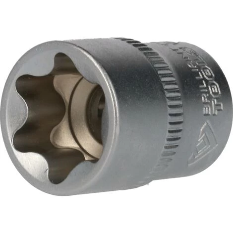 Die BRILLIANT TOOLS Torx-E-Stecknuss BT021841 ist zum einfachen Festziehen und Lösen von Schrauben mit Torx-E Antrieb geeignet. Der kurze metrische Einsatz hat einen 3/8″ (10 mm) Innenvierkant-Antrieb welcher nach DIN 3120 gefertigt wurde. Die Schlüsselweite ist E20. Die Stecknuss hat eine Gesamtlänge von 28 mm. Die Oberfläche ist an der Antriebsseite und an der Innensechskantseite matt verchromt, diese ist durch eine Längsrändelung getrennt.