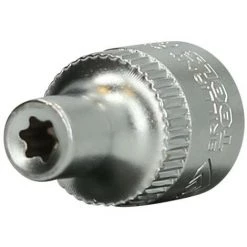 Die BRILLIANT TOOLS Torx-E-Stecknuss BT021831 ist zum einfachen Festziehen und Lösen von Schrauben mit Torx-E Antrieb geeignet. Der kurze metrische Einsatz hat einen 3/8″ (10 mm) Innenvierkant-Antrieb welcher nach DIN 3120 gefertigt wurde. Die Schlüsselweite ist E5. Die Stecknuss hat eine Gesamtlänge von 28 mm. Die Oberfläche ist an der Antriebsseite und an der Innensechskantseite matt verchromt, diese ist durch eine Längsrändelung getrennt.