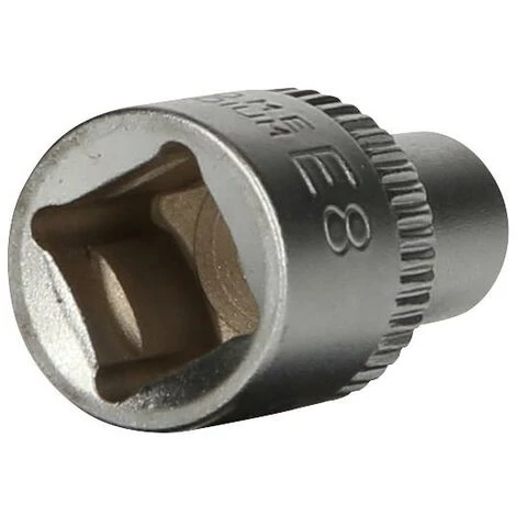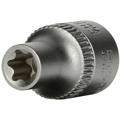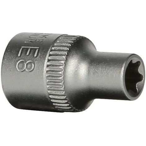 Die BRILLIANT TOOLS Torx-E-Stecknuss BT021834 ist zum einfachen Festziehen und Lösen von Schrauben mit Torx-E Antrieb geeignet. Der kurze metrische Einsatz hat einen 3/8″ (10 mm) Innenvierkant-Antrieb welcher nach DIN 3120 gefertigt wurde. Die Schlüsselweite ist E8. Die Stecknuss hat eine Gesamtlänge von 28 mm. Die Oberfläche ist an der Antriebsseite und an der Innensechskantseite matt verchromt, diese ist durch eine Längsrändelung getrennt.
