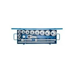 Steckschlüssel-Satz 1, 14-teiligZwölfkant-Steckschlüsseleinsätze aus GEDORE Vanadium Stahl 31CrV3, geschmiedet und vergütet. Lieferung in GEDORIT blauer Stahlblechkassette. Inhalt: 1 Umschaltknarre 10 Steckschlüsseleinsätze 36; 41; 46; 50; 55; 60; 65; 70; 75; 80 mm 2 Verlängerungen 205; 405 mm 1 Griff mit Gleitstück | Eigenschaften: Ausführung: Steckschlüsselgarnituren, Gewicht: 31400, Anzahl der Teile: 15, Satzinhalt Größe: 1, Vierkant: 1