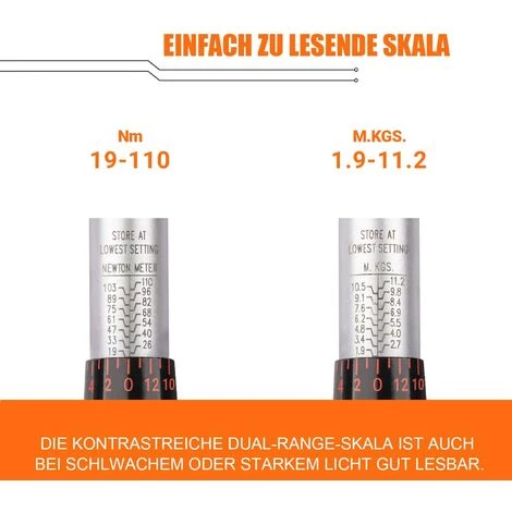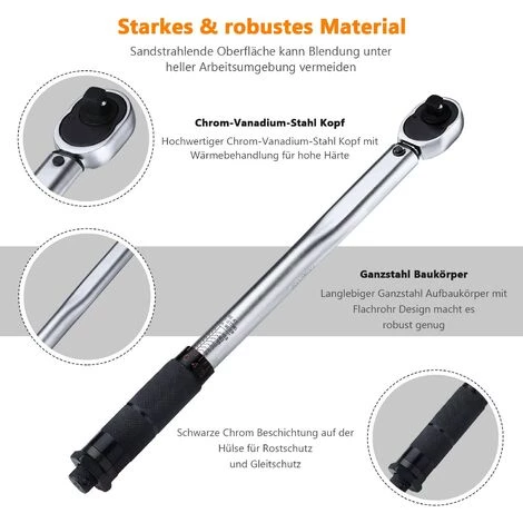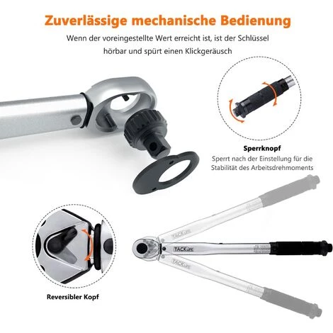 - ▲ 【 Einfache Bedienung】Umschaltbarer Ratschenkopf, beide Richtungen zum Festziehen und Lösen, es ist einfach, Ihr Drehmoment einzustellen und zu verriegeln, indem Sie Hülse und Mutter antreiben. „Klick“ ertönt, wenn der Schlüssel das voreingestellte Drehmoment erreicht, um eine Überlastung zu vermeiden