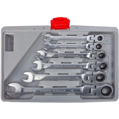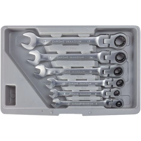 Die 12 Ratschenschlüssel haben Gelenkköpfe. So wird das Arbeiten auch an schwer zugänglichen Stellen erleichtert.