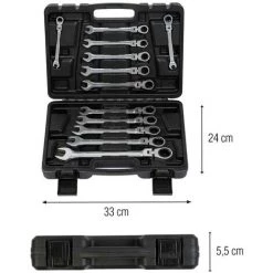 Mit Tractionsprofil · Schlanke Köpfe · Schaft mit extra stabilem Doppel-T-Profil · Ringschlüsselkopf 15° abgewinkelt · Chrom-Vanadium · Oberfläche: verchromt, Köpfe poliert · DIN 3113 Form A, ISO 3318, ISO