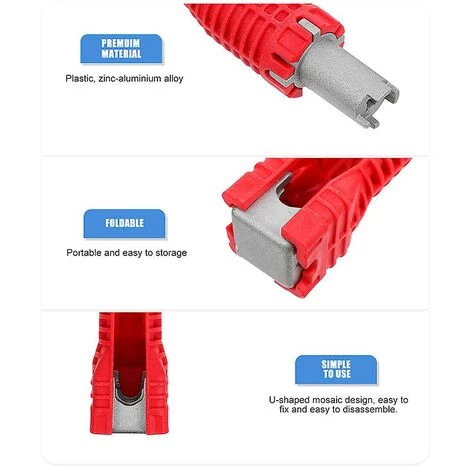 BeschreibungDer Schlüssel besteht aus leichtem und hochfestem technischem Kunststoff, rutschfester Textur, langlebiger Zinklegierung, kompakt, leicht und sauber. Sanitärwerkzeuge sind ein unverzichtbares Gadget für Ihre Familie. Eigenschaften – Farbe: rot. – Größe: 20,30 x 5,00 x 5,00 cm Zoll.- Material: Kunststoff, Zinklegierung.- Geeignet für Versorgungsmuttern/Absperrventile/Siebkorb/Zuleitungsmutter/Wasserhahnmuttern.- Offener Schlitz ermöglicht einfachen Zugang zu vorhandenen Versorgungsleitungen: Toilettenbecken/Spüle/Bad/Küche und mehr.- Sieb Die Korbbefestigung hält die Ablaufeinheit an Ort und Stelle, während die Siebmutter angezogen wird.- Mit einer Stange, die in die hintere Buchse eingeführt wird, kann dieses Werkzeug für gängige Wasserhahninstallationen und Spülensiebe problemlos schwierige Winkel drehen.- Extra langes Design: ermöglicht Ihnen zum Drehen schwer zugänglicher Befestigungsmuttern an Wasserhähnen, Sprühgeräten und Kugelhähnen.