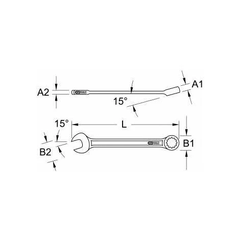 FlankTraction-ProfilDIN 3113 Form A / ISO 3318 / ISO 7738Maulstellung 15° abgewinkeltRing 15° abgewinkeltpolierte Köpfematt satiniertChrom Vanadium | Eigenschaften: Gewicht: 55, Winkel: 15°, Gesamtlänge: 170 mm, Kopfhöhe 1: 8,4 mm, Kopfhöhe 2: 5,8 mm, Außenmaß (b2): 29,3, Außenmaß (b1): 19,7, Norm: DIN 3113 Form A, ISO 3318, ISO 7738, Material: Chrom-Vanadium-Stahl, Schlüsselweite (Zoll): 1/2, Ausführung: Ringmaulschlüssel, Profil1: Flank Traction, Profil2: Zollmaße