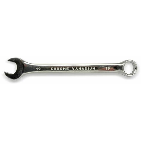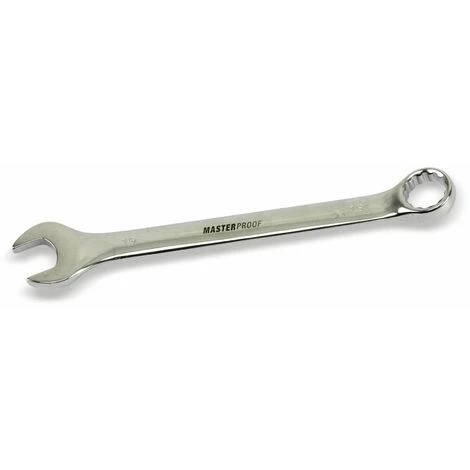 Hochwertiger Gabel-Ringschlüssel aus Chrom-Vanadium Stahl verchromt. Beide Seiten mit gleicher Größe. Features: – Chrom-Vanadium Stahl – verchromt – Ringseite 15 ° gewinkelt – Maulstellung: 15 ° – Schlüsselweite: 19 mm – Länge: 230 mm