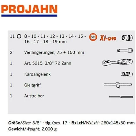 PROJAHN 3/8″ Xi-on Steckschlüsselkoffer, 17-tlg., 4111
