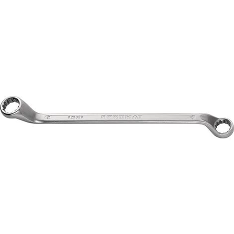 Doppelringschlüssel 12x13mm 216mm tief gekr.PROMAT CV-Stahl · verchromt · tief gekröpft · mit dünnwandigen Ringen DIN 838 / ISO 3318 / ISO 1085 / ISO 10104 Weitere technische Eigenschaften: · Oberfläche: verchromt