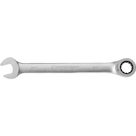 Maulringratschenschlüssel SW 13mm L.180mm ger.PROMAT gerade Form · CV-Stahl · verchromt · Maul 15° abgewinkelt · 72 Zähne Weitere technische Eigenschaften: · Länge: 180mm · Material: Chrom-Vanadium-Stahl