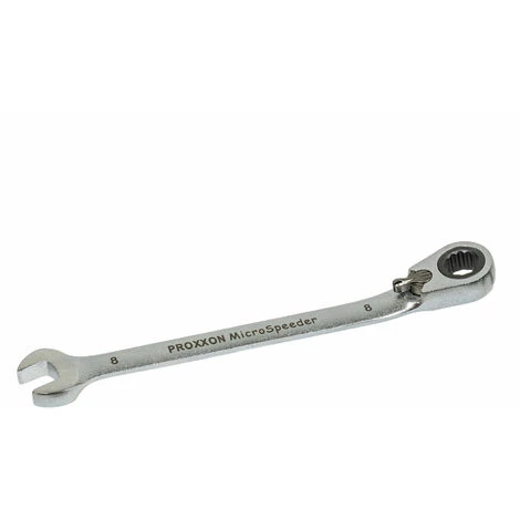 Die Extrem robusten und hochwertigen Ratschenschlüssel MicroSpeeder von Proxxon werden aus CrV-Stahl hergestellt und besitzen einen um 15° abgewinkelten Kopf (ringseitig), welcher sich bestens zum Schrauben an Planflächen eignet. Dank der feinen Verzahnung mit 72 Zähnen erfolgt der Antrieb bereits ab einer Hebelbewegung von nur 5°.