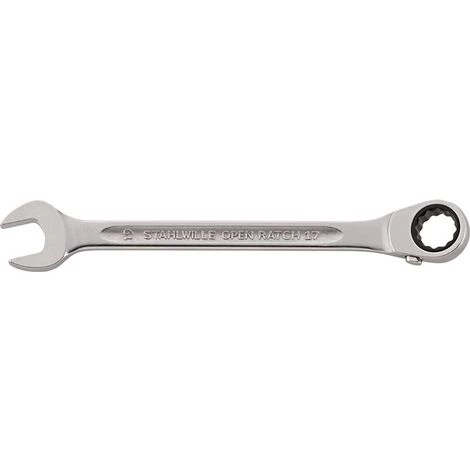 Maulringratschenschlüssel OPEN-RATCH 17 SW 8mm L.144mm umschaltbar,Rings.15Grad umschaltbar · Chrom-Alloy-Stahl · verchromt · Maulstellung 15°, Ringseite um 15°, abgewinkelt · 72 Zähne Weitere technische Eigenschaften: · Länge: 144mm · Material: Chrom-Alloy-Stahl