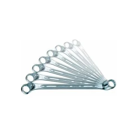 tief gekröpft · Chrom-Alloy-Stahl · verchromt DIN 838 / ISO 3318 / ISO 1085 / ISO 10104 Weitere technische Eigenschaften: · Schlüsselweiten: 6 x 7 , 8 x 9 , 10 x 11 , 12 x 13 , 14 x 15 , 16 x 17 , 18 x 19 , 20 x 22mm | Eigenschaften: Anzahl der Teile: 8, Norm: DIN 838 / ISO 10104, Material: Stahl