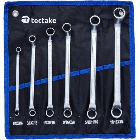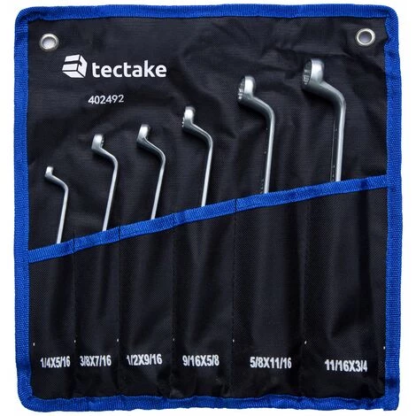 Das praktische 6-teilige Ringschlüssel Set besteht aus 6 verschiedenen Ringschlüsseln. Mit dem Werkzeugset hast Du immer den passenden Schlüssel zur Hand. Highlight: Das Schraubenschlüsselset wird in einer praktischen Rolltasche geliefert, so hat jeder Ringschlüssel seinen Platz. Praktisch: Die Rolltasche hat Ösen und so kannst Du die Tasche inkl. Werkzeuge einfach an der Wand befestigen. Bestelle noch heute das Ringschlüssel Set 6-tlg. von tectake.