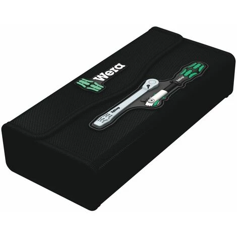 Kompaktes Knarren-Set mit 2 1/4 Knarren Zyklop Speed und Zyklop Metal mit Umschalthebel sowie 6 Zubehörteilen. Knarre Zyklop Speed mit Schwungmassenkonstruktion und griffiger Schnelldrehhülse für hohe Arbeitsgeschwindigkeit; frei schwenkbarem Knarrenkopf; definierter Stellung bei 0°. 90° nach links und rechts sowie 15° von 90° nach innen; in 0°-Stellung einsetzbar wie ein konventioneller Schraubendreher; Sicherheitsverriegelung der Nüsse auch in der Schraubendreherstellung; Links- /Rechtsumschaltung; feinverzahnt; kleiner Rückholwinkel von 5°; mehrkomponentiger Kraftform-Griff für ermüdungsarmes Arbeiten; Knarre Zyklop Metal mit Umschalthebel; schlanke Bauform zum Arbeiten auch in sehr engen Bauräumen; aufgrund der Feinverzahnung mit 72 Zähnen wird ein niedriger Rückholwinkel von 5° ermöglicht; mit Umschalthebel für einen bequemen Richtungswechsel; mit sicherer Nussverriegelungsfunktion; geschmiedete Vollmetallknarre (Chrom-Molybdän) für besonders hohe Robustheit bei langer Lebensdauer; unglaublich kompakte Satzanordnung für viel Werkzeug auf engem Raum; extrem kompakte textile Box mit sehr hoher Robustheit und Langlebigkeit; aufrecht positionierbar zur übersichtlichen Lagerung im Werkstattregal; durch textiles Außenmaterial auch auf empfindlichen Oberflächen abzulegen; geringes Gewicht und Volumen für vereinfachte Mobilität.
