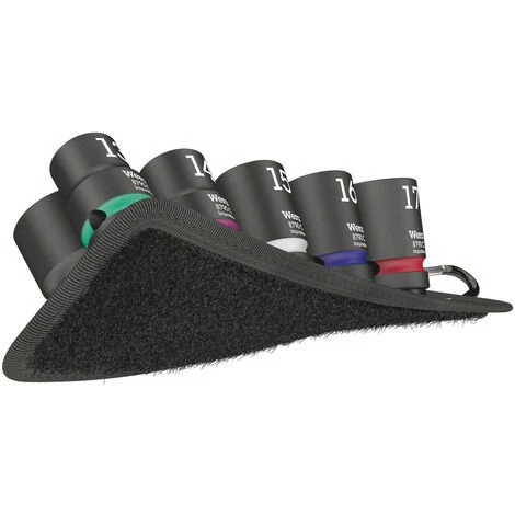 Robuster Textilgurt (Belt) im typischen Wera Design mit 9 Impaktor-Steckschlüssel-Einsätzen auf engstem Raum. Ein leichtgängiger Drehmechanismus sorgt für einen sicheren Halt und leichte Entnahme der Nüsse. Inklusive Karabinerhaken zur Befestigung an Gürtelschlaufen oder Taschen. Mit Vliesrücken und Klettklebestreifen zur einfachen Befestigung z.B. an Wand, Regal, Werkstattwagen und Wera 2go Werkzeugtransportsystem. Impaktor-Nüsse für den Einsatz mit elektrisch oder mit Druckluft angetriebenen Schlagschraubern mit 12,5 mm = 1/2″ Antrieb. Die Impaktor-Technologie sorgt für überdurchschnittliche Standzeiten auch bei extremen Anforderungen. Mit Take it easy Werkzeugfinder mit Farbkennzeichnung nach Größen – zum einfachen und schnellen Finden des benötigten Werkzeugs. Mit Sechskantprofil und Nut mit Bohrung. Das Sechskantprofil ermöglicht die Übertragung hoher Kräfte und belastet die Kanten der Schraubenmutter bzw. des Schraubenkopfes weniger als ein Zwölfkantprofil. Für Außensechskantschrauben und -muttern.