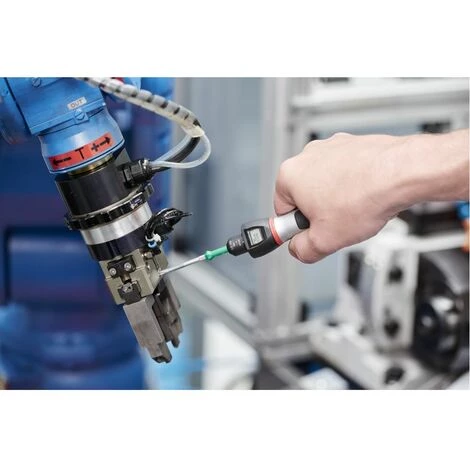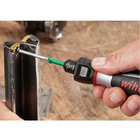 iTorque mechatronischer Drehmomentschraubendreher mit Kalibrierschein • Anwendung: Zum kontrollierten Verschrauben bei vorgegebenem Drehmoment. in Kombination mit einer Wiha Torque 4 mm-Wechselklinge. • Ausführung: Drehmomentwert einstellbar über Digitalskalaautomatisch auslösendDrehmoment komfortabel einstellbar über direkt im Griff integrierten Drehknopfergonomischer Kunststoff-Metall-Verbundgriff aus hochwertigen und robusten Materialiendeutlich hör- und fühlbares Klicksignal beim Erreichen des eingestellten DrehmomentwertsKalibrieralarm nach je 5000 Anwendungen (Norm-Richtwert/rücksetzbar)Genauigkeit: ± 6 %. rückführbar auf nationale Normale • Vorteil: Extra: Click Control – integrierter Zähler erfasst jede Anwendunggroßes Digital-Display für einfaches. stufenloses Einstellen des DrehmomentwertesEinheiten einfach umschaltbar (Nm vierkant in.lbs/Ncm vierkant in.oz) • Lieferung: mit Bithalteklinge ¼ Inch