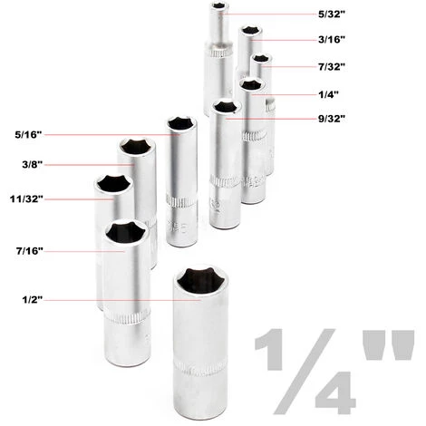 11tlg Lange 1/4″ Zoll Stecknuss Satz zöllig Steckschlüssel 5/32″-1/2