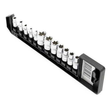 | Zubehör | 5 x ¼“-Steckschlüssel: E4, E5, E6, E7, E8 7 x 3/8″-Steckschlüssel: E10, E11, E12, E14, E16, E18, E20 1 x Steckschiene |